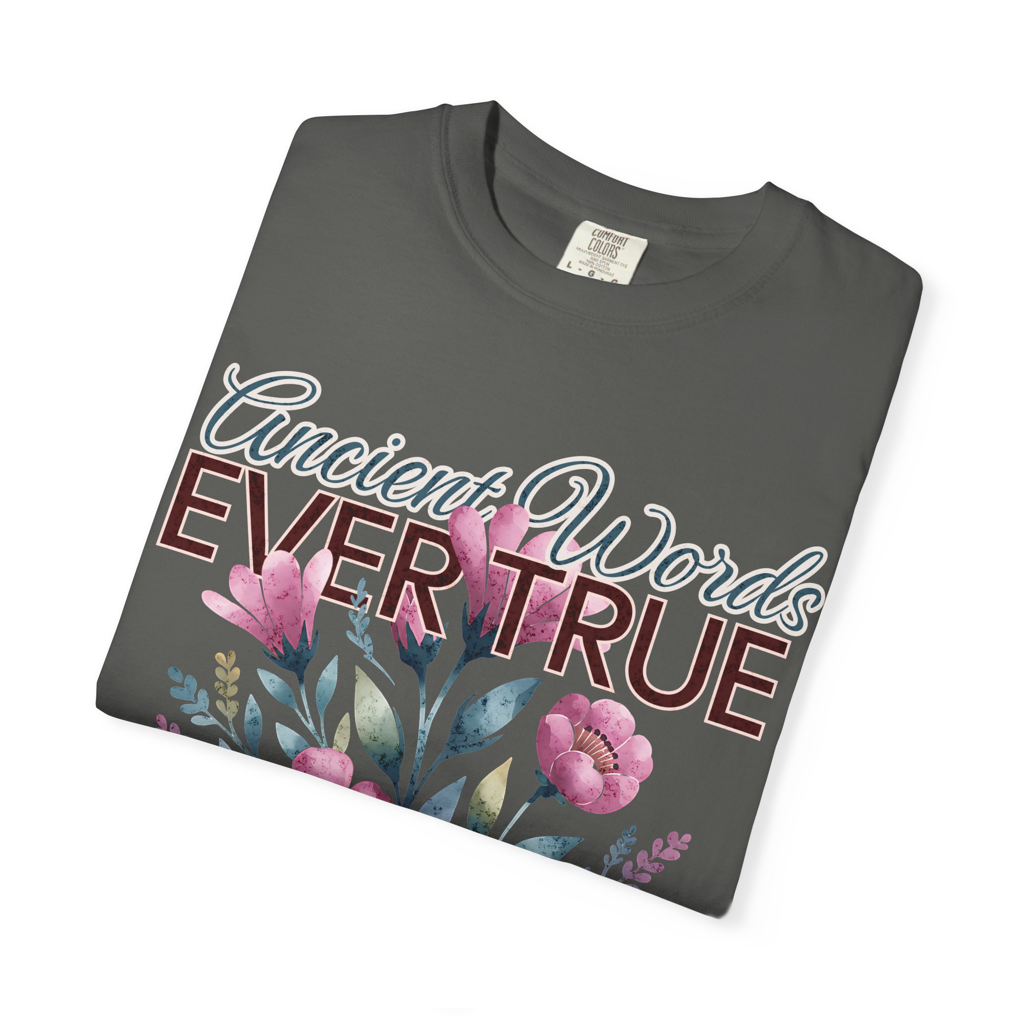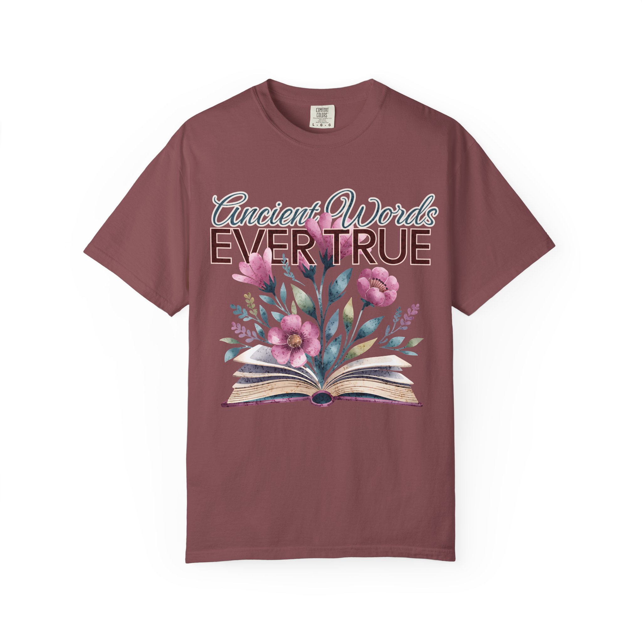 Inspired by the timeless hymn “Ancient Words,” this Comfort Colors® tee is a beautiful reminder of the enduring power of God’s Word. The simple, vintage-style text design reads “Ancient Words” — a nod to the truth that never fades.
