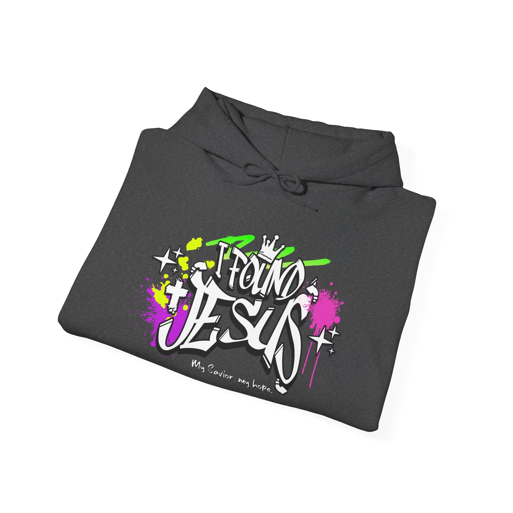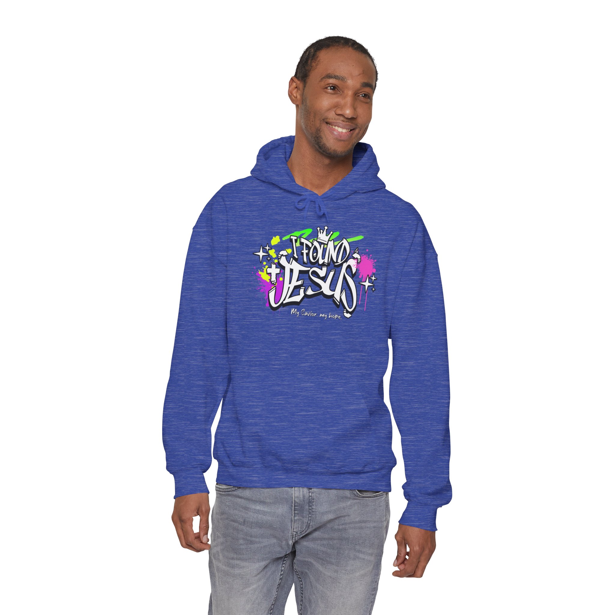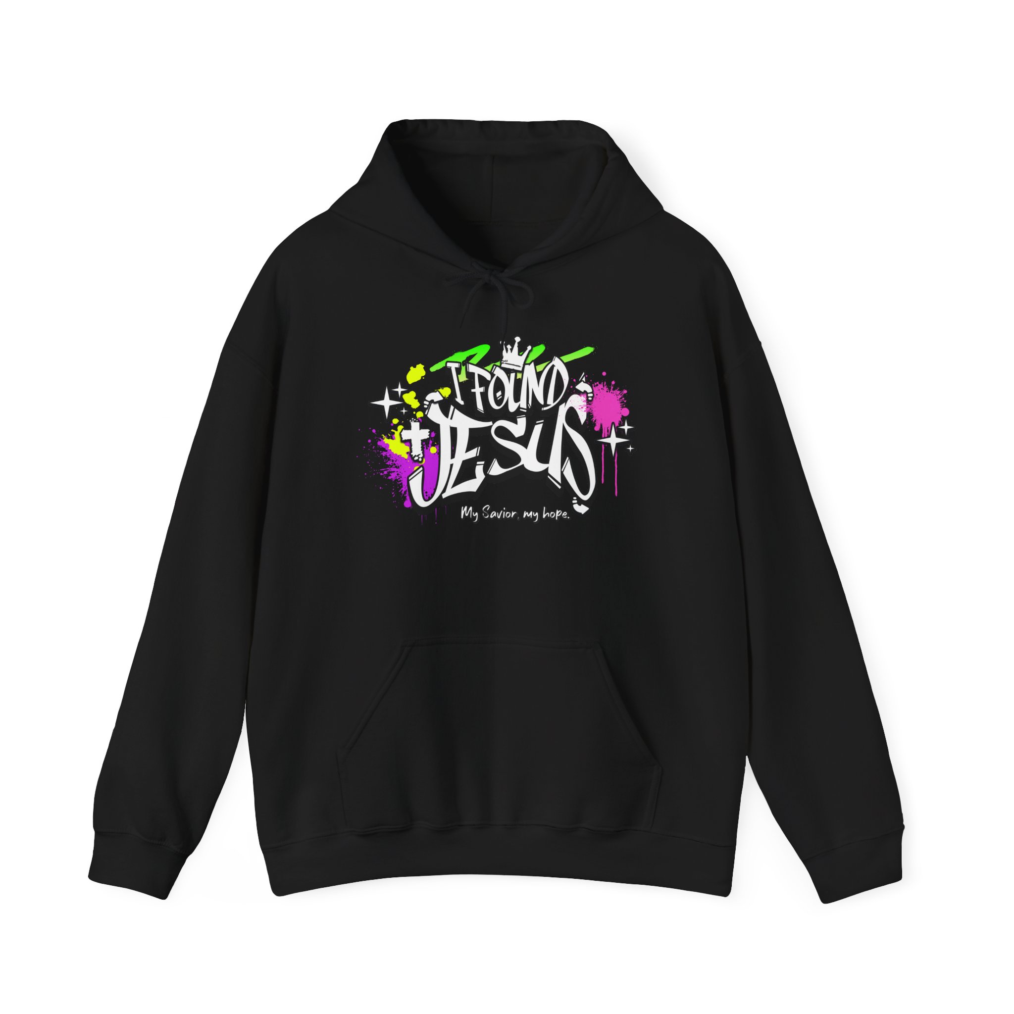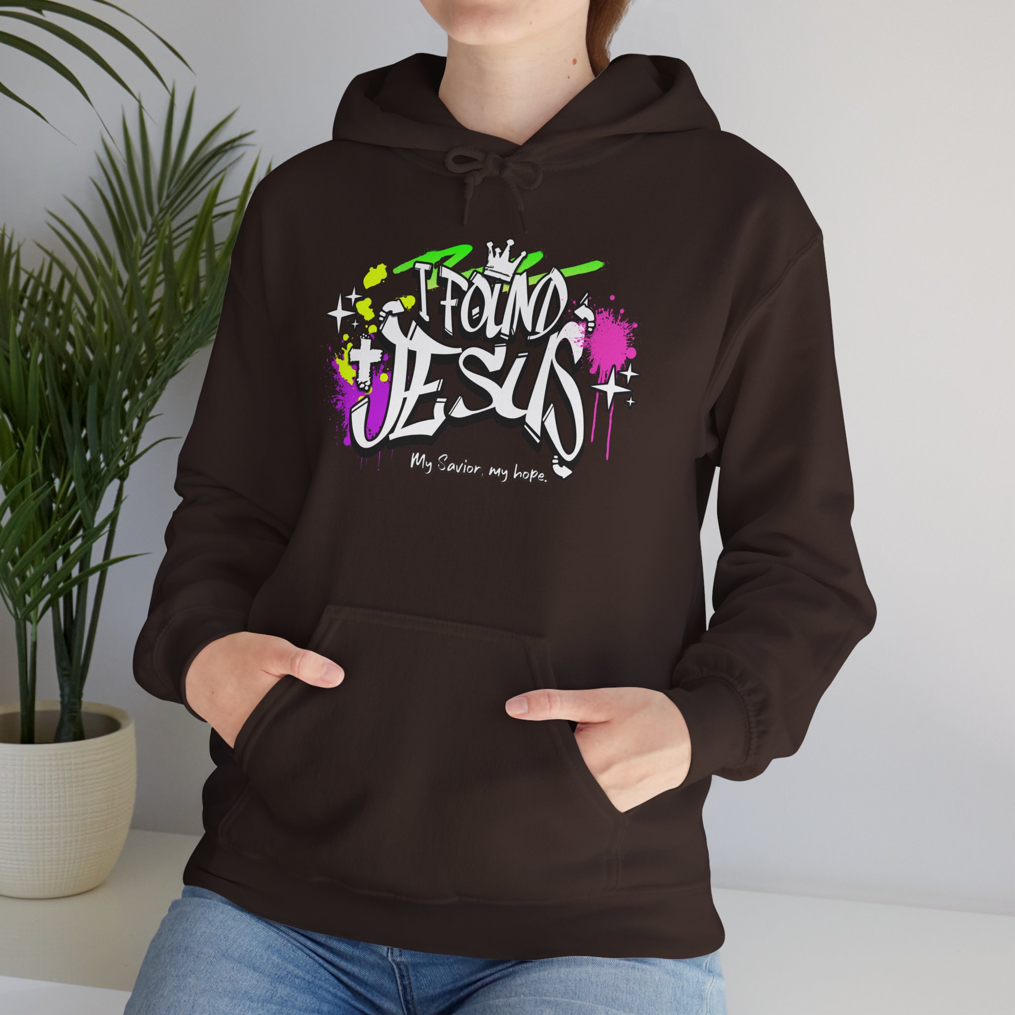 Bold faith meets street style in this unisex hoodie featuring graffiti-inspired text that declares: “I Found Jesus — My Savior, My Hope.” Designed to make a statement of redemption and new life, this piece is perfect for those who aren’t afraid to wear their testimony.