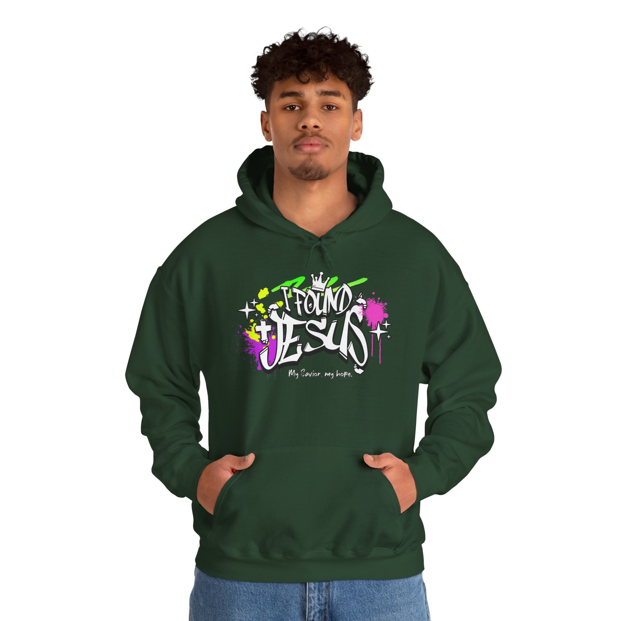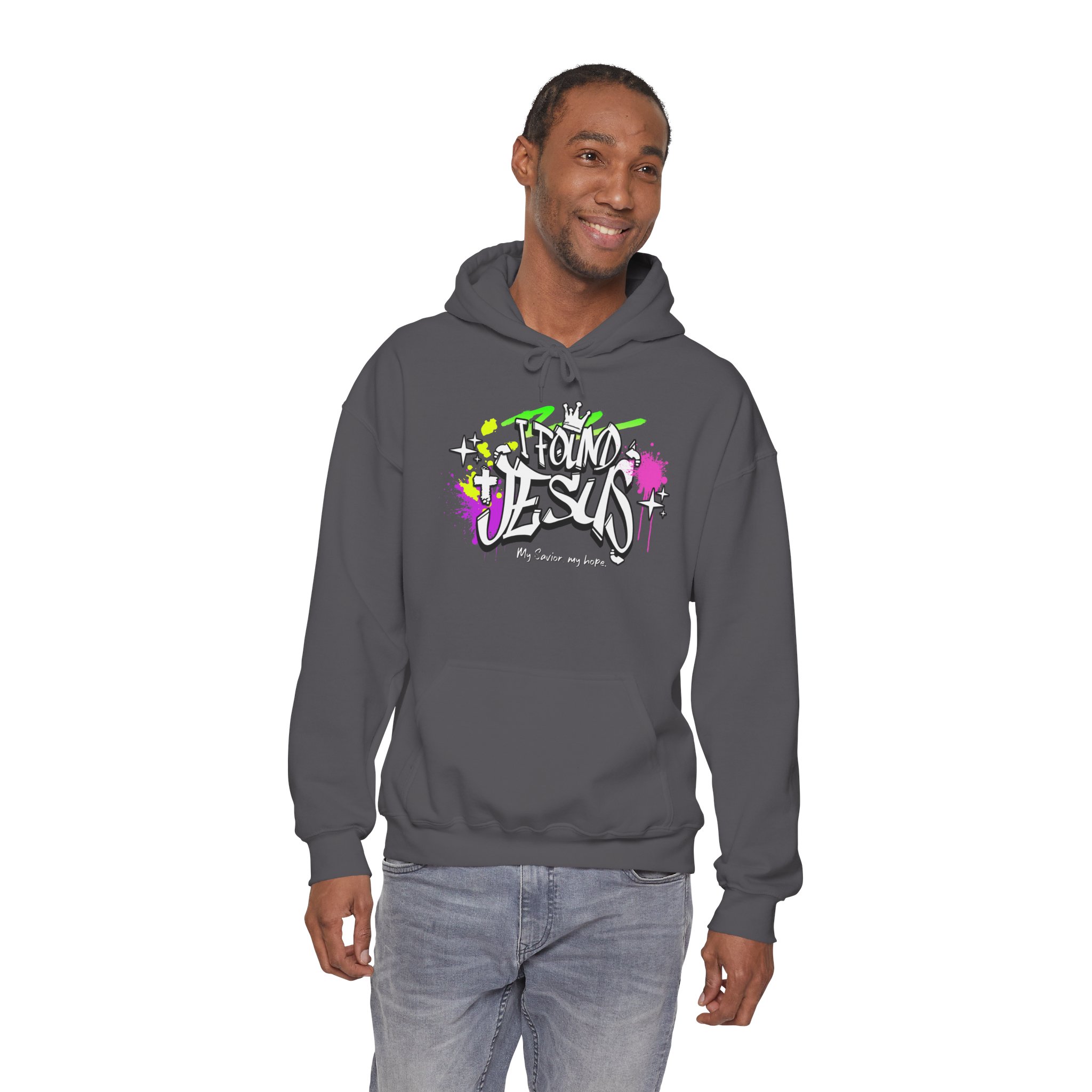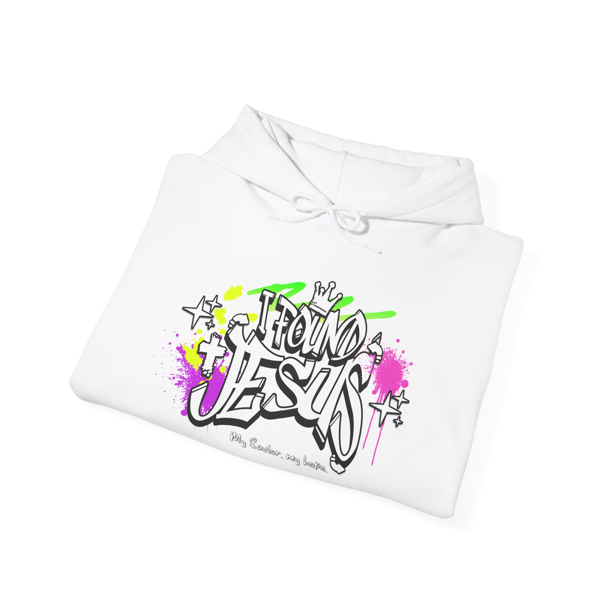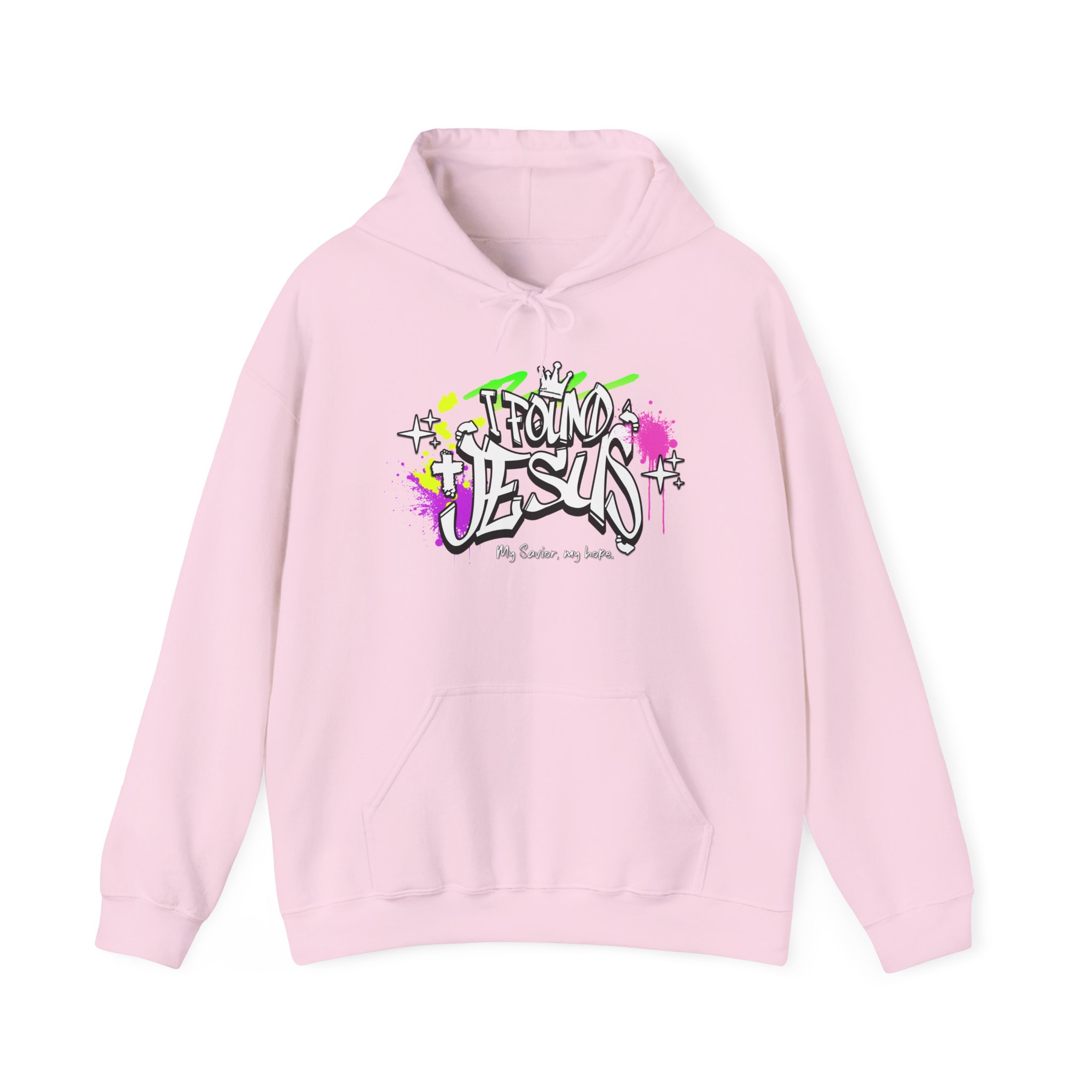 Bold faith meets street style in this unisex hoodie featuring graffiti-inspired text that declares: “I Found Jesus — My Savior, My Hope.” Designed to make a statement of redemption and new life, this piece is perfect for those who aren’t afraid to wear their testimony.